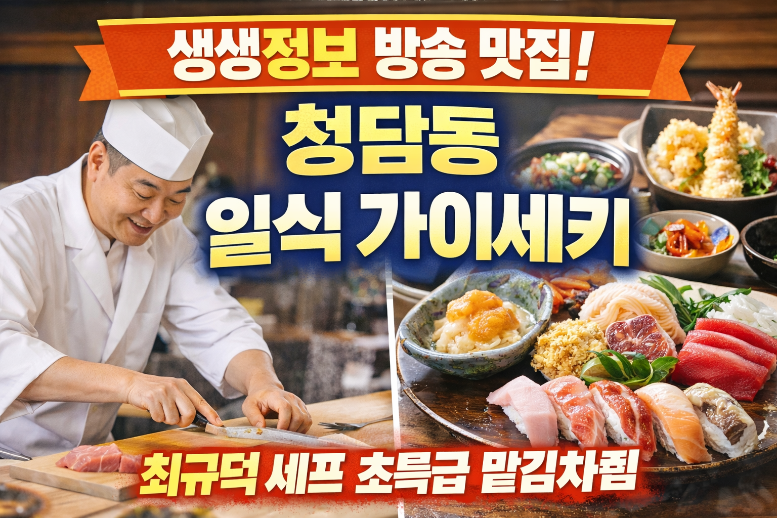 📌 위 맛집은 KBS2 생생정보 ‘대가의 맛집’ 코너에 소개된 곳으로, 정통 일식 가이세키를 청담동에서 경험하고 싶은 분들에게 강력 추천합니다. :